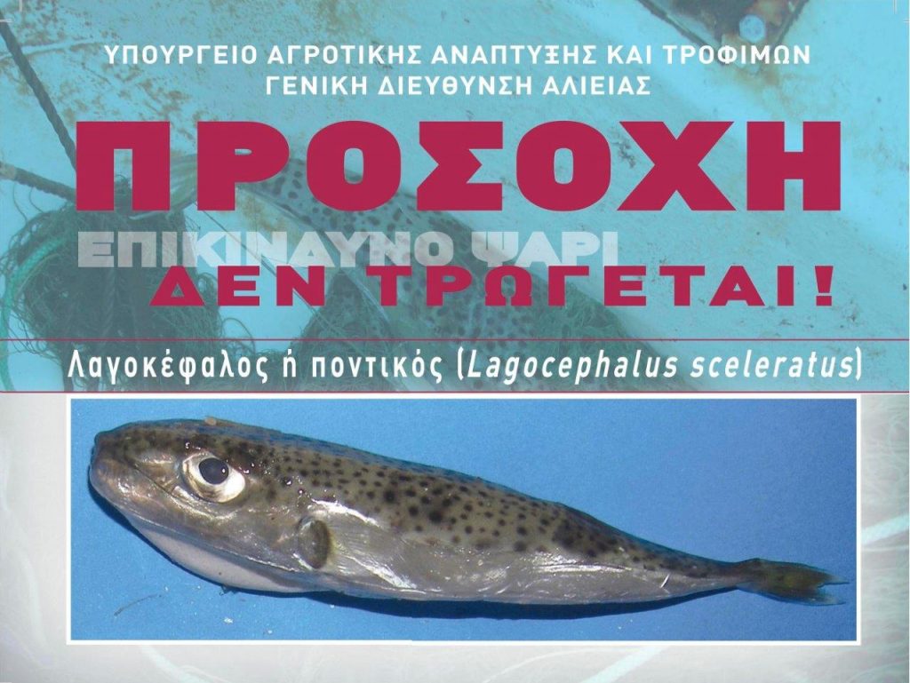 Μετά από τις κατά καιρούς αναφορές στα Μέσα Μαζικής Ενημέρωσης ότι ο Λαγοκέφαλος, μπορεί να καταναλωθεί αν κάποιος γνωρίζει πώς να το καθαρίσει, καθώς και πληροφορίες ότι έχουν γίνει απόπειρες κατανάλωσης του συγκεκριμένου είδους, εφιστούμε την προσοχή των καταναλωτών, των επαγγελματιών & ερασιτεχνών αλιέων σχετικά με το ψάρι Lagocephalus sceleratus (λαγοκέφαλος) το οποίο έχει εξαπλωθεί και εγκατασταθεί στην Κρήτη. Πρόκειται για είδος εξαιρετικά τοξικό και επικίνδυνο αν καταναλωθεί από τον άνθρωπο και δεν υπάρχει αντίδοτο στην τοξίνη (ΤΤΧ) που περιέχει, η οποία βρίσκεται και στη σάρκα του ψαριού και δεν καταστρέφεται με το μαγείρεμα. Η τοξικότητα του εξαρτάται από πολλούς παράγοντες όπως ηλικία, μέγεθος, αναπαραγωγική περίοδος κ.α. Η τοξικότητα του αυξάνεται την περίοδο αναπαραγωγής του κυρίως τους θερινούς μήνες. Σε πολλές χώρες παρατηρούνται κάθε χρόνο δηλητηριάσεις από την κατανάλωσή του, με συσχετιζόμενα ποσοστά θνησιμότητας. Το είδος αυτό έχει χαρακτηριστικό σχήμα σαν τορπίλη, δύο ασημένιες λωρίδες στις πλευρές του σώματος, στη ράχη είναι γκριζωπό με έντονα σκούρα στίγματα, δεν έχει λέπια και διαθέτει τέσσερα χαρακτηριστικά δυνατά δόντια σαν ράμφος. Δεν είναι επιθετικό ή επικίνδυνο με άλλο τρόπο, εκτός αν καταναλωθεί. Η εμπορία του απαγορεύεται (Καν. 853/2004). Λόγω της πρόσφατης διάνοιξης της νέας διώρυγας του Σουέζ, πιθανόν νέα είδη να εμφανιστούν για πρώτη φορά. Για το λόγο αυτό, παρακαλούνται οι αλιείς σε περίπτωση σύλληψης στα εργαλεία τους, αλιευμάτων τα οποία δεν αναγνωρίζουν, να κρατούν το δείγμα (συντηρημένο ή κατεψυγμένο) και να το προσκομίζουν στα τμήματα Αλιείας της Δ/νσης Αγροτικής Οικονομίας & Κτηνιατρικής των Περιφερειακών Ενοτήτων (Ηρακλείου, Χανίων, Λασιθίου, Ρεθύμνου) ή να επικοινωνούν με το Ελληνικό Κέντρο Θαλάσσιων Ερευνών (ΕΛΚΕΘΕ), στα παρακάτω στοιχεία επικοινωνίας: |