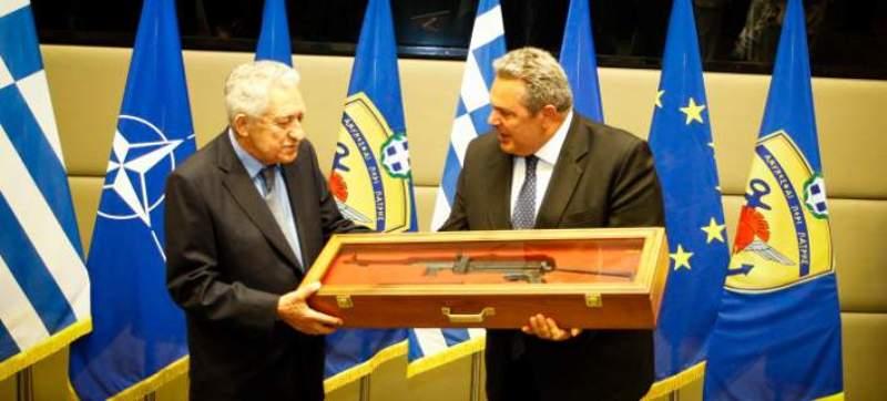 Ένα αποχαιρετιστήριο δώρο έκανε ο υπουργός Άμυνας, Πάνος Καμμένος, στον απερχόμενο αναπληρωτή υπουργό Άμυνας, Φώτη Κουβέλη, ο οποίος ανέλαβε το υπουργείο Ναυτιλίας.