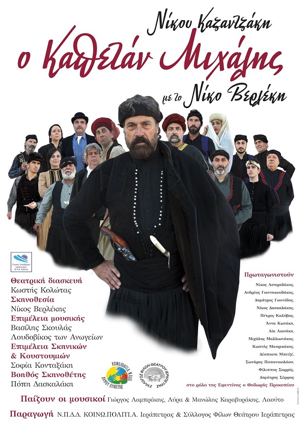 Την Πέμπτη 6 Σεπτεμβρίου 2018, με την συνεργασία και διοργάνωση της Περιφέρειας Κρήτης, θα παρουσιαστεί στο Ανοιχτό Θέατρο Γαζίου η παράσταση «Καπετάν Μιχάλης», σε σκηνοθεσία και με πρωταγωνιστή τον αγαπημένο ηθοποιό Νίκο Βερλέκη και έναν πολυπληθή θίασο να ζωντανεύει πιστά και καθαρά τους ήρωες του Καζαντζάκη, την ώρα που η λύρα, το λαούτο και το τραγούδι επί σκηνής, ντύνουν μουσικά την παράσταση.