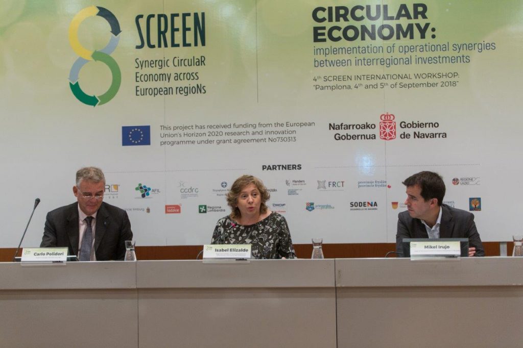 Διεθνής Συνάντηση Εργασίας στο πλαίσιο του Ευρωπαϊκού Προγράμματος “SCREEN” πραγματοποιήθηκε στις 4 – 5 Σεπτεμβρίου στην Παμπλόνα της Ισπανίας. Τη συνάντηση χαιρέτησαν η Υπουργός Αγροτικής Ανάπτυξης & Περιβάλλοντος της Ναβάρα καθώς και η Δ/ντρια Περιβάλλοντος της Περιφέρειας της Ναβάρα, οι οποίες μεταξύ άλλων τόνισαν τη σημασία και τα οφέλη της Κυκλικής Οικονομίας και ανέπτυξαν προοπτικές για ανάπτυξη νέων επιχειρήσεων και συνεργασιών μέσω αυτού του νέου μοντέλου οικονομίας. Κατά τη διάρκεια της συνάντησης παρουσιάστηκαν παραδείγματα στρατηγικής στην κυκλική οικονομία τόσο από την περιφέρεια της Ναβάρα (Ισπανία), όσο και από τις περιφέρειες Φρίσλαντ (Κάτω Χώρες), Τάμπερε (Φινλανδία) και Λάτσιο (Ιταλία). Επίσης, αναφέρθηκαν παραδείγματα διαπεριφερειακών συνεργασιών όπως η καινοτόμος επένδυση μεταξύ περιφερειών στη Λομβαρδία (Ιταλία) που αφορά ένα Έξυπνο Εργοστάσιο αποδόμησης και επαναδόμησης υλικών. Ο συνονιστής του Προγ/τος SCREEN, κ. Polidori, αναφέρθηκε στα μέχρι τώρα αποτελέσματα του Προγ/τος, τα οφέλη που έχουν αποκομίσει οι εταίροι από τη μεταξύ τους συνεργασία και τα επόμενα βήματα προκειμένου να συσταθεί από κοινού ένα εγχειρίδιο καθοδήγησης για την Κυκλική Οικονομία που θα απευθύνεται στους πολιτικούς ιθύνοντες. Την Περιφέρεια Κρήτης εκπροσώπησε στη συνάντηση η Αλίκη Καρούσου, μέλος της ομάδας εργασίας του Προγ/τος και στέλεχος της Δ/νσης Αγροτικής Οικονομίας.