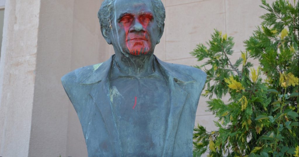 Μπογιές στην προτομή του ιστορικού δημάρχου της Μυτιλήνης, επικεφαλής του ΕΑΜ Λέσβου, ανήμερα της επετείου απελευθέρωσης του νησιού από τα ναζιστικά στρατεύματα