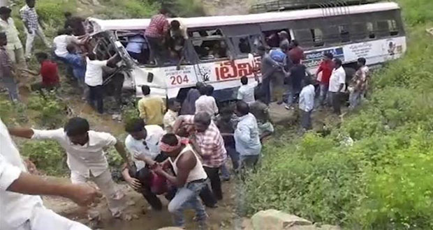 Τουλάχιστον 55 άνθρωποι σκοτώθηκαν και πολλοί ακόμη τραυματίστηκαν όταν ένα λεωφορείο ξέφυγε από την πορεία του και έπεσε σε ένα φαράγγι στο κρατίδιο Τελανγκάνα της νότιας Ινδίας, όπως ανέφεραν οι τοπικές αρχές.