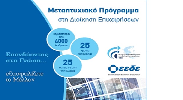 | 20:30 – 20:50 | Απονομή Πιστοποιητικών Σπουδών, Μεταπτυχιακό Πρόγραμμα στη Διοίκηση Επιχειρήσεων (Σειρά 20η , 22η) |