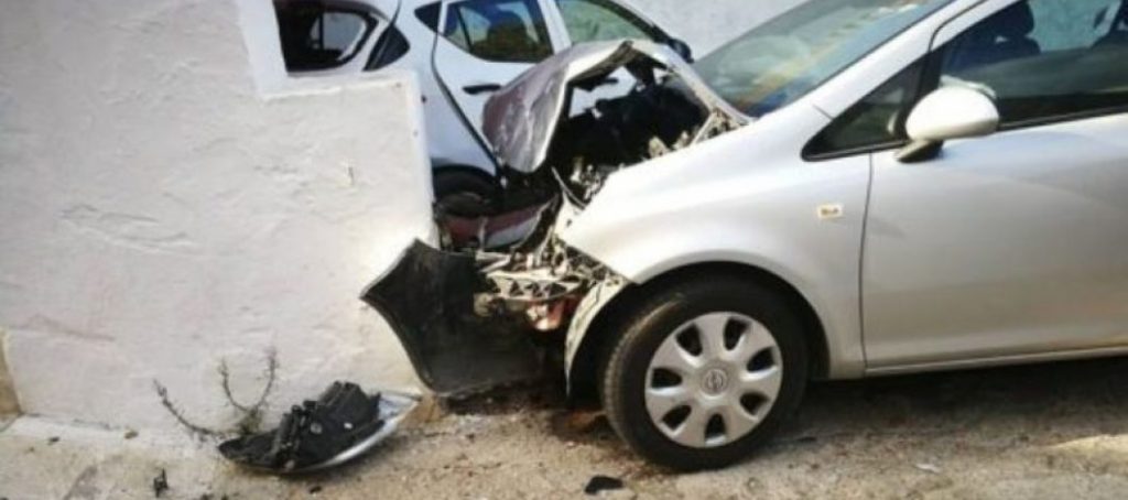Ο οδηγός του Ι.Χ έχασε τον έλεγχο και προσέκρουσε σε τοίχο και σε ένα σταθμευμένο αυτοκίνητο.