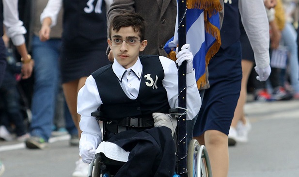 Οι φωτογραφίες είναι από την παρέλαση της 28ης Οκτωβρίου 2015 στο Ηράκλειο και την υποδοχή που του είχε γίνει στη συνέχεια στο δημαρχείο Ηρακλείου από την αντιδήμαρχο Μ. Καναβάκη και συμμαθητές του