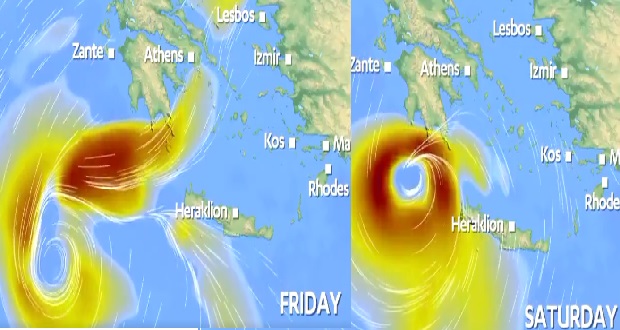 Το βίντεο που ακολουθεί μετέδωσε το βρετανικό μετεωρολογικό δίκτυο stvweather και δείχνει πώς πλησιάζει ο μεσογειακός κυκλώνας στο νησί, αλλά και ποια θα είναι η πορεία του τις επόμενες δυο ημέρες. Μάλιστα το δίκτυο συνιστά σε όποιους είναι στην περιοχή της Κρήτης, της Ρόδου αλλά και στην Κω, να προσέξουν.