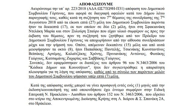 CandiaDoc-Κρήτη-Επικαιρότητα,αρθρογραφία,παραπολιτικά > ΚΡΗΤΗ > Γόρτυνα: Με παράνομες αποφάσεις διέγραψαν οφειλές 626.000 € του δήμου και προς εργαζόμενους! (έγγραφα) > gortyna- akyrosi