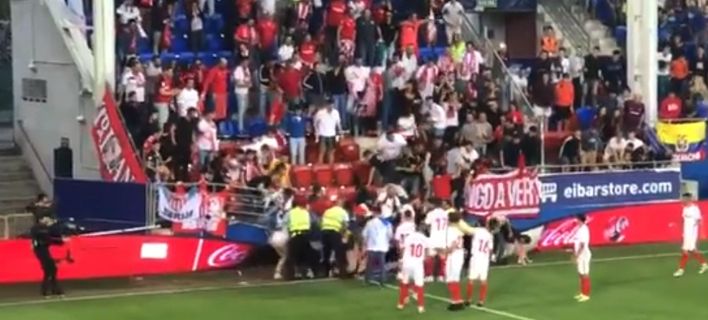 Το περιστατικό συνέβη στον αγώνα Εϊμπάρ-Σεβίλλη για το ισπανικό πρωτάθλημα, την ώρα που οι οπαδοί της Σεβίλλης πανηγύριζαν για γκολ της ομάδας τους.
