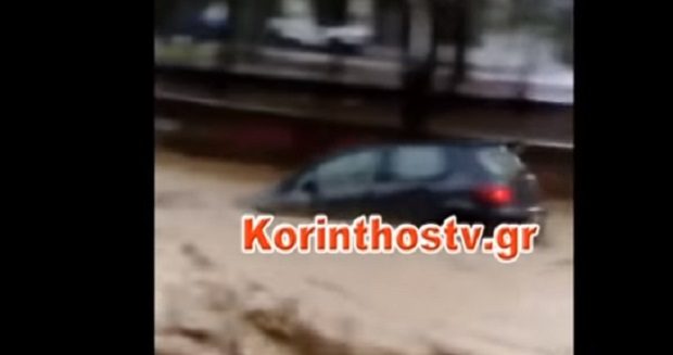 Συγκλονιστικό βίντεο- Τα ορμητικά νερά του ποταμού παρασύρουν αυτοκίνητο στο Κιάτο
