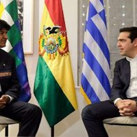 Ολοκληρώθηκε η συνάντηση που είχε ο πρωθυπουργός Αλέξης Τσίπρας με τον Πρόεδρο της Βολιβίας, Έβο Μοράλες, στο περιθώριο της 73ης Συνόδου της Γενικής Συνέλευσης του ΟΗΕ, στη Νέα Υόρκη. Πηγή: ΑΠΕ