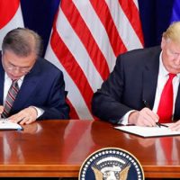 Ο Ντόναλντ Τραμπ και ο Νοτιοκορεάτης πρόεδρος Μουν Τζε-ιν υπέγραψαν την Δευτέρα μια συμφωνία ελεύθερων συναλλαγών την οποία ο Αμερικανός πρόεδρος χαρακτήρισε «ιστορικό ορόσημο στο εμπόριο». Ο Τραμπ, που επιδιώκει να επαναδιαπραγματευτεί εμπορικές συμφωνίες με αρκετές χώρες, δήλωσε ότι η αναθεωρημένη συμφωνία θα μειώσει την γραφειοκρατία και θα αυξήσει την ευημερία στις ΗΠΑ και την Νότια Κορέα. «Οι δύο μας…