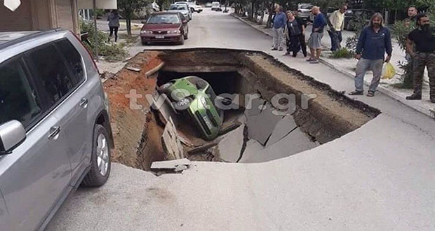 Απόδειξη των συνεπειών της κακοκαιρίας των προηγούμενων ημερών είναι ο δρόμος στην οδό Θερμοποτάμου στην Αιδηψό που σήμερα ξαφνικά άνοιξε και κατάπιε ό,τι υπήρχε από επάνω του. Ένα αυτοκίνητο έπεσε μέσα, το οποίο ήταν σταθμευμένο και έτσι δεν υπήρξαν θύματα.