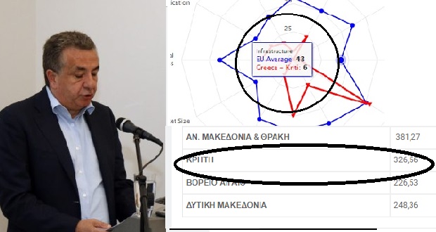 Και μόνο ένας από τους δείκτες, αυτός των υποδομών, δίνει εξήγηση για την θέση του νησιού: οι υποδομές ο δείκτης της Κρήτης είναι μόλις 6, με τον ευρωπαϊκό να φτάνει στο 43…