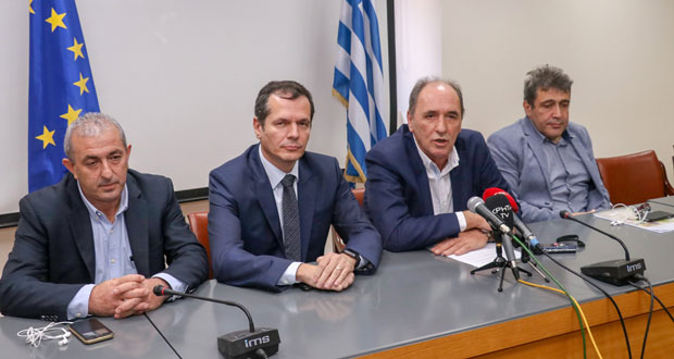 Η διπλή διασύνδεση της Κρήτης αποτελεί το μεγαλύτερο έργο στην Ελλάδα και θα λύσει οριστικά το ενεργειακό πρόβλημα της Κρήτης, σύμφωνα με τον υπουργό Ενέργειας και Περιβάλλοντος Γιώργο Σταθάκη ο οποίος βρέθηκε σήμερα στο Ηράκλειο όπου και συναντήθηκε με τον περιφερειάρχη Κρήτης Σταύρο Αρναουτάκη, παράγοντες της Κρήτης και δημάρχους. Σε δηλώσεις του ο κ. Σταθάκης ανέφερε ότι το συγκεκριμένο έργο θα έχει τεράστιο όφελος για το νησί, τη χώρα και το περιβάλλον, ενώ οι τεχνικές προδιαγραφές του έργου θα είναι έτοιμες μέχρι τα Χριστούγεννα.