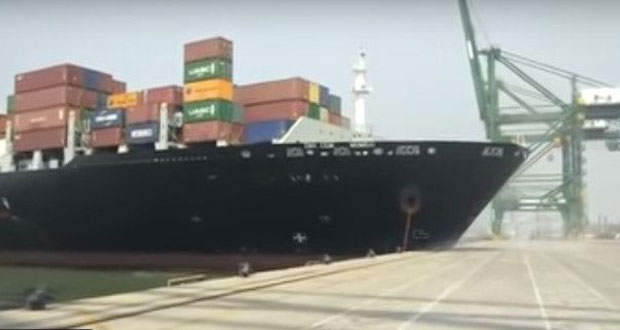 Το μήκους 335 μέτρων πλοίο κατέπλεε στο λιμάνι προκειμένου να δέσει. Ωστόσο ένα πρόβλημα στο πηδάλιο προκάλεσε το ατύχημα.
