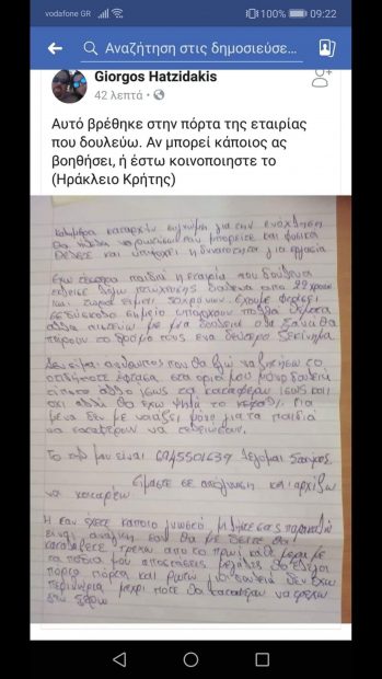 Συγκλονίζει το γράμμα που άφησε ένας πατέρας τεσσάρων παιδιών σε επιχείρηση στο Ηράκλειο, για να βρει δουλειά.