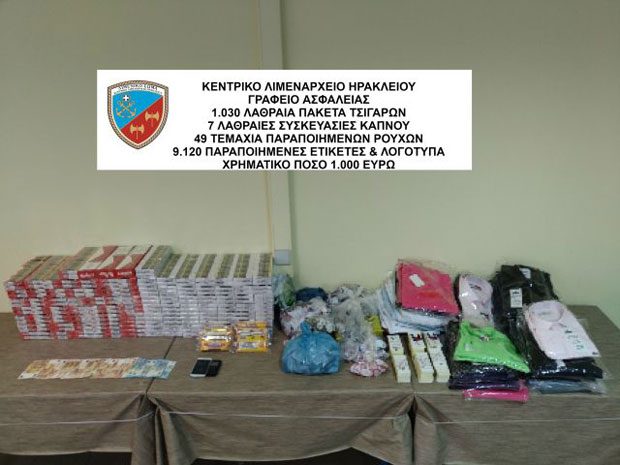 Όπως αναφέρει η ανακοίνωση οτυ λιμενικού, κατόπιν αξιοποίησης πληροφοριών για μεταφορά λαθραίων καπνικών προϊόντων μέσω Ε/Γ-Ο/Γ πλοίων και την εν συνεχεία διάθεσή τους στο Ηράκλειο, διενεργήθηκε μεσημβρινές ώρες σήμερα, νομότυπη έρευνα στην οικία του ανωτέρω συλληφθέντα, κατά τη διάρκεια της οποίας βρέθηκαν και κατασχέθηκαν χίλια τριάντα (1.030) πακέτα τσιγάρων και επτά (07) συσκευασίες καπνού των πενήντα γραμμαρίων (50gr) έκαστη, διαφόρων επωνυμιών, καπνικά προϊόντα τα οποία στερούνταν τελωνειακού ελέγχου, καθώς δεν έφεραν ένσημη ταινία ειδικού φόρου κατανάλωσης.
