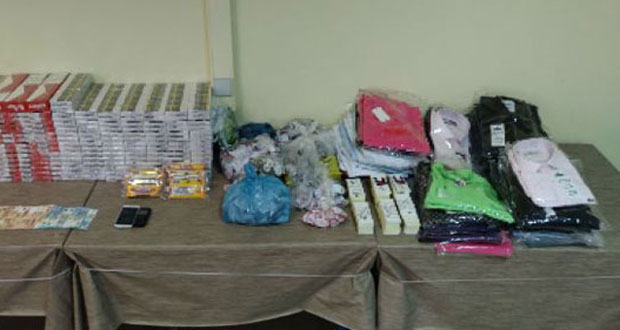 Επιπρόσθετα, βρέθηκαν και κατασχέθηκαν σαράντα έξι (46) τεμάχια πιθανόν απομιμητικών – παραποιημένων ρούχων, εννέα χιλιάδες εκατόν είκοσι (9.120) ετικέτες και λογότυπα τα οποία επρόκειτο πιθανόν να χρησιμοποιηθούν για την παραποίηση ειδών ρουχισμού, δύο (02) συσκευές κινητών τηλεφώνων καθώς και το χρηματικό ποσό των χιλίων ευρώ (€1.000).