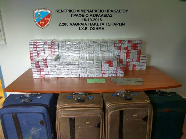 Όπως αναφέρει η ανακοίνωση του λιμενικού, κατόπιν αξιοποίησης πληροφοριών για μεταφορά λαθραίων καπνικών προϊόντων μέσω Ε/Γ-Ο/Γ πλοίων και την εν συνεχεία διάθεσή τους στο Ηράκλειο, διενεργήθηκε το πρωί της Πέμπτης νομότυπη έρευνα στο όχημα που οδηγούσε, κατά την οποία βρέθηκαν τέσσερις βαλίτσες, οι οποίες περιείχαν συνολικά 2.200 πακέτα τσιγάρων, διαφόρων επωνυμιών, τα οποία στερούνταν τελωνειακού ελέγχου, καθώς δεν έφεραν ένσημη ταινία ειδικού φόρου κατανάλωσης.
