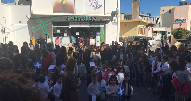 Ακολούθησε κατάθεση στεφάνου από μαθητές των νηπιαγωγείων και των δημοτικών σχολείων, του γυμνασίου και του λυκείου Γαζίου, καθώς και τους εκπροσώπους της Δημοτικής Αρχής, ενώ για την 28η Οκτωβρίου μίλησαν οι μαθητές της ΣΤ τάξης του 1ουδημοτικού σχολείου Αγίας Μαρίνας Ανδρέας Ξυλούρης, Ειρήνη Μανιά και Αλκιβιάδης Μελιδονιώτης.