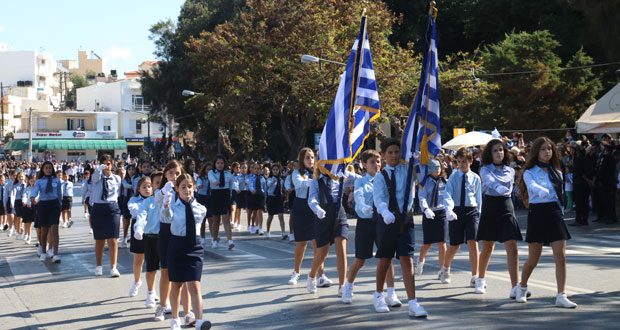 Με δοξολογία στο Μητροπολιτικό Ναό του Αγ Μηνα,ομιλία,επιμνημόσυνη δέηση-κατάθεση στεφάνων στο μνημείο του Άγνωστου Στρατιώτη και παρέλαση στη πλατεία Ελευθερίας τιμήθηκε στην ΠΕ Ηρακλείου η Εθνική επέτειος της 28ης Οκτωβρίου από τον Κλήρο, τις Αρχές, θεσμικούς εκπροσώπους, Ένοπλες Δυνάμεις- Σώματα Ασφαλείας, μαθητές-εκπαιδευτικούς, Αντιστασιακές οργανώσεις, συλλόγους με την συμμετοχή πλήθους κόσμου.