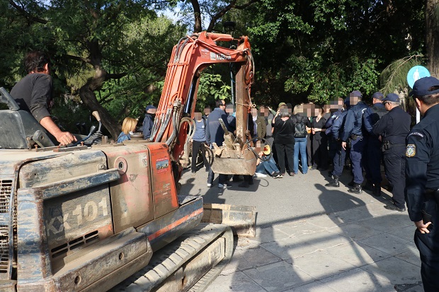 Οι αστυνομικές δυνάμεις απώθησαν δεκάδες πολίτες από τις “Φυλές του πάρκου”, που από το πρωί εμπόδισαν την είσοδο στο χώρο του εργολάβου και των μηχανημάτων, ζητώντας να κάνουν πρώτα συνέλευση.