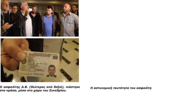 Σύμφωνα με το thestival.gr. σύνεδροι προπηλάκισαν αστυνομικό με πολιτικά ο οποίος βρισκόταν στο χώρο. Αφού τον ρώτησαν με έντονο τρόπο ποιος τον κάλεσε, του πήραν με τη βία την ταυτότητα και δήλωσαν ότι θα καλέσουν τον διοικητή του για την παραλάβει.