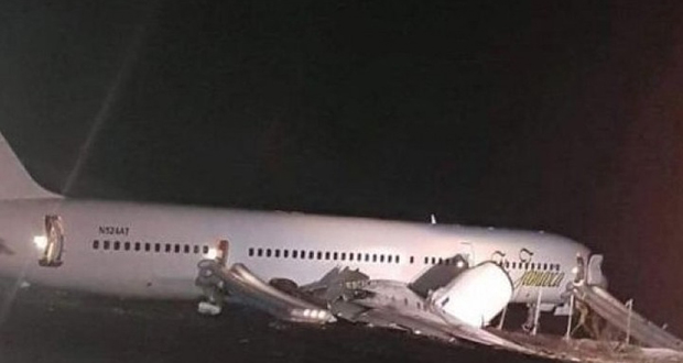 Το αεροπλάνο της εταιρίας Fly Jamaica Airways με 126 επιβαίνοντες είχε μόλις απογειωθεί με προορισμό το Τορόντο, όταν διαπιστώθηκε ένα πρόβλημα στo υδραυλικό σύστημά του και επέστρεψε στο αεροδρόμιο, όπου ξέφυγε από την πορεία του στον διάδρομο προσγείωσης, διευκρίνισε ο υπουργός Ντέιβιντ Πάτερσον.
