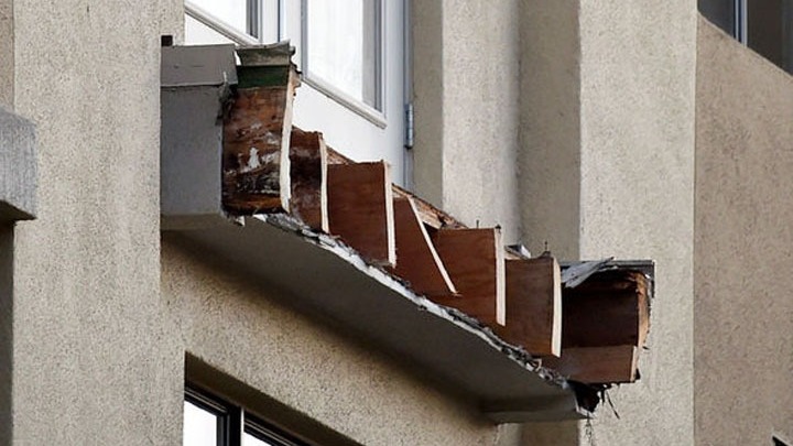 Δύο άνθρωποι, μια γυναίκα 59 ετών και ένα αγόρι 7 ετών, έπεσαν από τον πρώτο όροφο εξαιτίας της κατάρρευσης αυτού του μπαλκονιού επιφάνειας περίπου 1 τετραγωνικού μέτρου, διευκρίνισαν οι πυροσβέστες και διαβεβαίωσαν πως η κατάσταση της υγείας τους δεν εμπνέει καμιά ανησυχία.