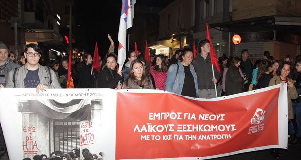 Δύο διαφορετικές πορείες πραγματοποιήθηκαν σήμερα στο Ηράκλειο, στα πλάισια της 45ης Επετείου του Πολυτεχνείου.