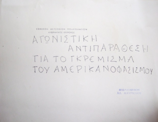 Είναι μερικά από τα ντοκουμέντα των ημερών του Πολυτεχνείου. Αυτοσχέδια τρυκάκια που πετούσαν οι φοιτητές στους δρόμους αλλά και η ανακοίνωση της Συντονιστικής Επιτροπής στις 16 Νοεμβρίου 1973, λίγες ώρες πριν μπει το τανκ στο Πολυτεχνείο.