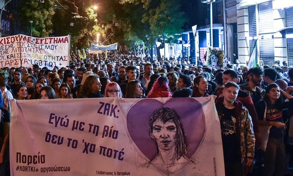 Διαδηλώτριες και διαδηλωτές συγκεντρώθηκαν αρχικά στην πλατεία Καπνικαρέας στο Μοναστηράκι και στη συνέχεια πραγματοποίησαν πορεία. Με κεντρικά συνθήματα «από την Αθήνα μέχρι τη Βραζιλία το φασισμό τσακίζουμε και την πατριαρχία» κι «ούτε σεξισμός, ούτε τρανσφοβία, καιρός για να τελειώνουμε με την πατριαρχία», οι συγκεντρωμένοι κατευθύνθηκαν μέχρι την Ομόνοια και ολοκλήρωσαν την πορεία τους στο σημείο όπου έχασε τη ζωή του ο Ζακ (Ζαχαρίας) Κωστόπουλος, στην οδό Γλάδστωνος.