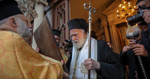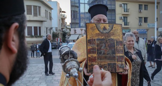 Πλήθος κόσμου βρέθηκε το απόγευμα της Κυριακής στον Άγιο Μηνά για την υποδοχή της εικόνας, την οποία παρέλαβε ο Αρχιεπίσκοπος Κρήτης, κ. Ειρηναίος.