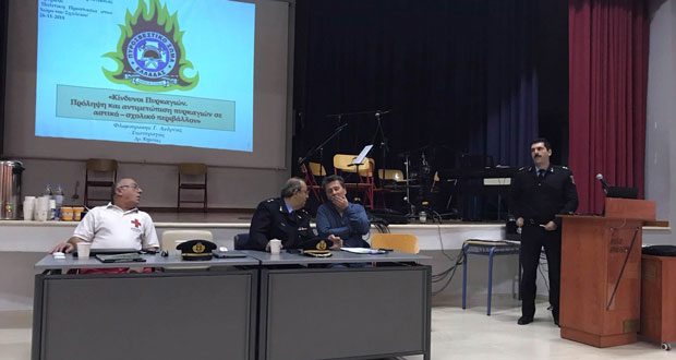 Με μεγάλη συμμετοχή ξεκίνησαν σήμερα από το 2ο Γυμνάσιο Ηρακλείου το Πρόγραμμα ενημερωτικών ημερίδων για την πρόληψη των πυρκαγιών, αλλά και των έντονων καιρικών φαινομένων στα σχολεία της Κρήτης που έχει ετοιμάσει και υλοποιεί η Περιφέρεια Κρήτης.