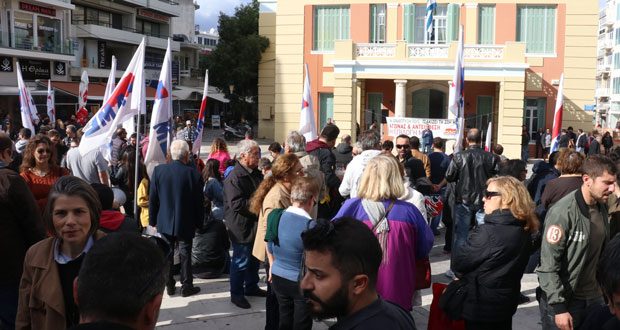 Με επιτυχία πραγματοποιήθηκε η σημερινή απεργιακή συγκέντρωση στη Πλατεία Ελευθερίας όπου πλήθος κόσμου έδωσε ηχηρό μήνυμα στη κυβέρνηση ΣΥΡΙΖΑ-ΑΝΕΛ, στη ΝΔ και στα υπόλοιπα κόμματα του κεφαλαίου για αυξήσεις στους μισθούς, Συλλογικές Συμβάσεις Εργασίας που να καλύπτουν τις ανάγκες και δουλειά με δικαιώματα.