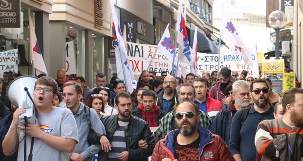 Πορεία πραγματοποίησαν στο Ηράκλειο μέλη του ΠΑΜΕ στο πλαίσιο της Πανελλαδικής Απεργίας.