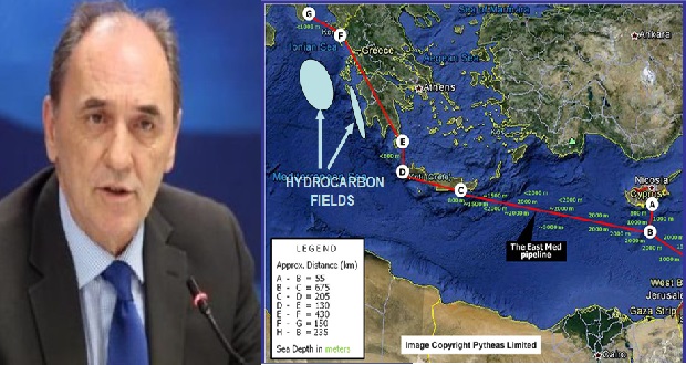 Σε χαιρετισμό του τον οποίο διάβασε εκ μέρους του η Προϊστάμενη του Γραφείου Οικονομικών και Εμπορικών Υποθέσεων της Πρεσβείας της Ελλάδας στην Κύπρο Γιούλη Μπογιατζοπούλου, στο 6ο Ενεργειακό Συμπόσιο, στη Λευκωσία, ο κ. Σταθάκης ανέφερε ότι «ένα έργο στρατηγικής σημασία τόσο για την Ευρώπη όσο για την Ελλάδα και την Κύπρο και την ευρύτερη περιοχή της Ανατολικής Μεσογείου είναι ο αγωγός φυσικού αερίου EastMed».