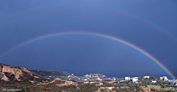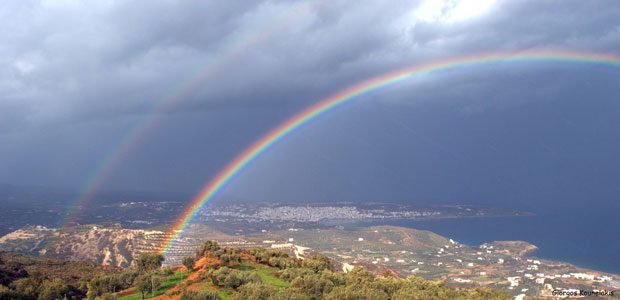 Ένα μεγάλο διπλό ουράνιο τόξο έκανε σήμερα την εμφάνισή του στην περιοχή της Σητείας.