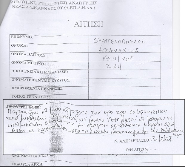 Δείτε το ιδιόγραφο σημείωμα (χωρίς ημερομηνία) από το φάκελλο που έχουν στείλει οι “Γνήσιοι και Έντιμοι Αλικαρνασσώτες”