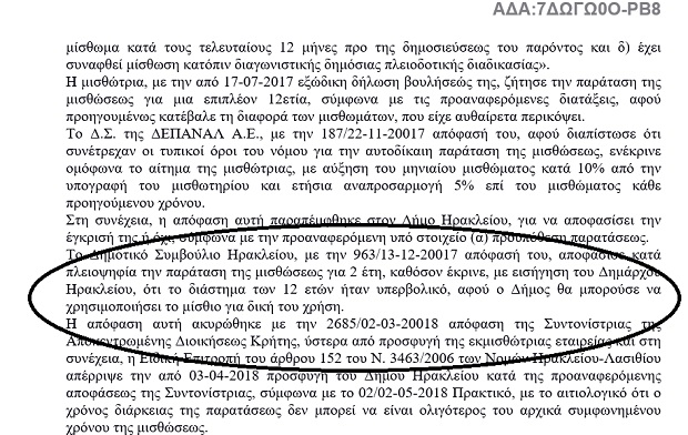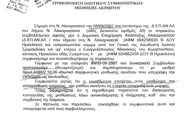 Κι ενώ συμβαίνουν όλα αυτά (στη συνέχεια θα θυμίσουμε σε γενικές γραμμές την υπόθεση), ο δήμος Ηρακλείου με έναν περίεργο τρόπο, και κόντρα στο σκεπτικό της αρχικής του απόφασης, αποφασίζει να παρατείνει για… 12 επιπλέον χρόνια την εκμίσθωση του οικοπέδου (κι αυτή ακόμα η αρχική εκμίσθωση “μπάζει” από παντού) επειδή κρίνει ότι το συγκεκριμένο δημοτικό οικόπεδο δεν πρόκειται να το χρειαστεί για το μέλλον και για τα επόμενα 12 χρόνια!