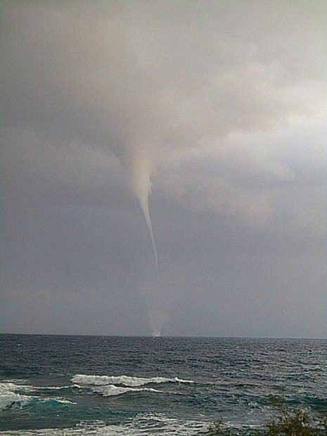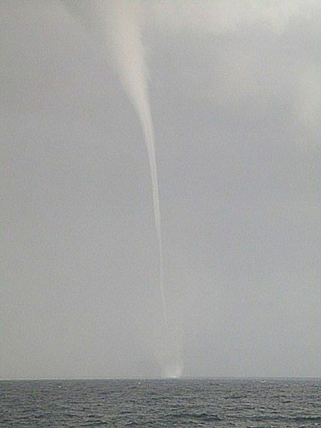 Ένας εντυπωσιακός υδροστρόβιλος έκανε την εμφάνισή του στη θαλάσσια περιοχή του Μακρύ Γυαλού σήμερα το απόγευμα.