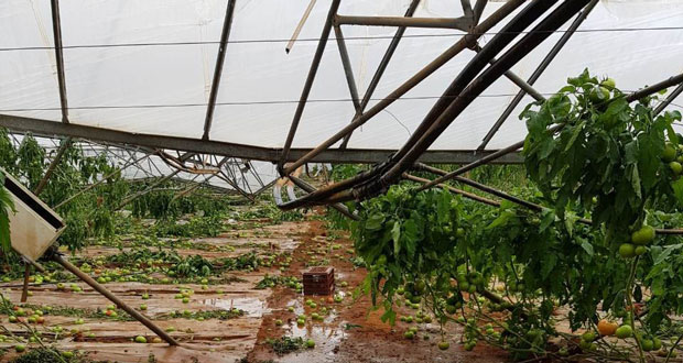 Πρόκειται για 10 στρέμματα καλλιεργημένα με ντομάτες, οι οποίες ήταν σχεδόν έτοιμες για συγκομιδή. Το κόστος; Περίπου 100.000€ για την παραγωγή και 200.000€ για τα κατεστραμμένα θερμοκήπια!