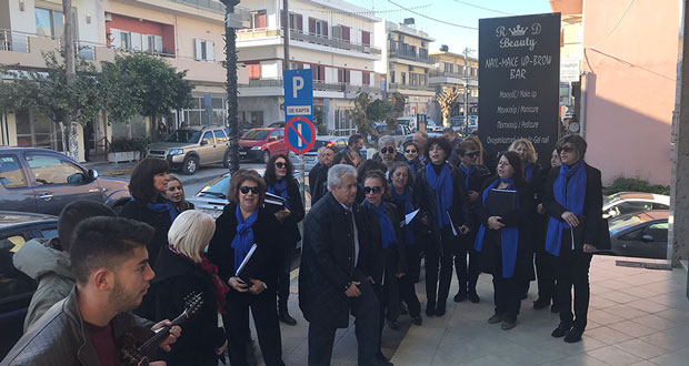 Παραδοσιακά κάλαντα των Χριστουγέννων, με βιολί και κιθάρα «έψαλαν» σήμερα στο Δήμαρχο Ηρακλείου κ. Βασίλη Λαμπρινό και σε Αντιδημάρχους τα μέλη του Λαογραφικού συλλόγου «Χοροδρώμενα» γεμίζοντας μελωδίες τη Λότζια.