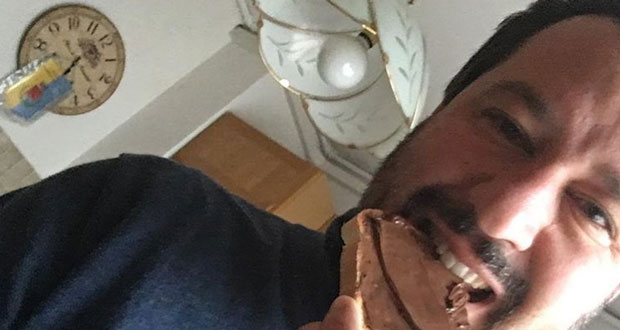 Στη φωτογραφία που ανήρτησε ο Σαλβίνι, φαίνεται να τρώει μια φέτα ψωμί με σοκολάτα και γράφει: «ξεκινάω τη μέρα μου με ψωμί και Nutella, εσύ;».
