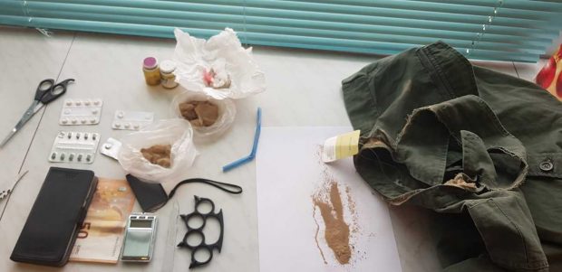 Βρέθηκαν και κατασχέθηκαν 78,5 γραμμάρια Ηρωίνης, ναρκωτικά δισκία, 1 ζυγαριά και το χρηματικό ποσό των 50 ευρώ
