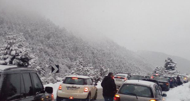 Ο δρόμος στο σημείο εκείνο, είχε πιάσει πάγο με αποτέλεσμα οι προπορευόμενοι οδηγοί να χάσουν το έλεγχο του οχήματός τους και οι πίσω, ο ένας μετά το άλλον, να προσκρούει στο μπροστινό του. Από τη καραμπόλα παρουσιάστηκε έντονο κυκλοφοριακό πρόβλημα αφού ηταν πολλοί εκείνοι που κατέβαιναν από το χιονοδρομικό.