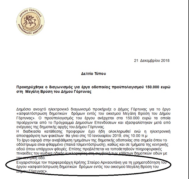 Σε κάθε ανακοίνωση έργου (καθημερινά είναι τουλάχιστον μία!) ευχαριστεί τον περιφερειάρχη που υπέγραψε!