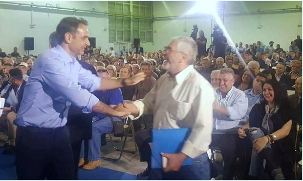 Φωτογραφία από το documentonews.gr στην οποία απεικονίζεται ο αποστολέας  των μαζικών μηνυμάτων, γραμματέα Β4 ΝΟΔΕ της ΝΔ, Σπύρος Αβραμάκος, με τον κ. Μητσοτάκη.