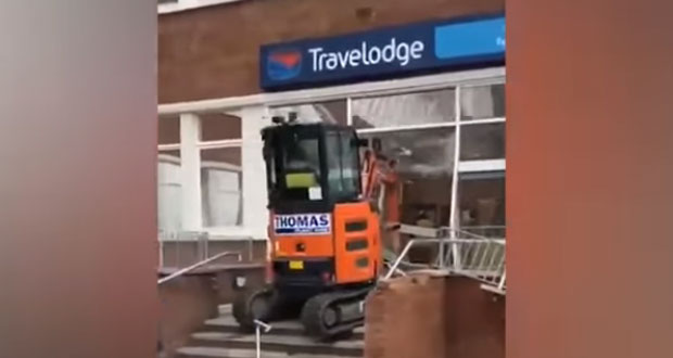 Ο άνδρας ανέβηκε με την μπουλντόζα τα σκαλιά του ξενοδοχείου στο Λίβερπουλ και έσπασε την τζαμαρία, ενώ διέλυσε τον χώρο της ρεσεψιόν, παρότι τον παρακαλούσαν να σταματήσει. Ο οικοδόμος υποστήριζε ότι του χρωστούσαν περίπου 600 λίρες, σύμφωνα με αυτόπτες μάρτυρες.