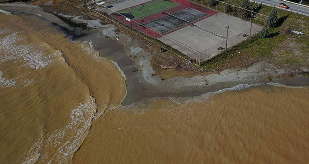 Αλλαξε χρώμα η θάλασσα του Αργολικού κόλπου από τις τεράστιες ποσότητες λασπόνερων που εκβάλλονται από το ποτάμι της Πάνιτσας στη Νέα Κίο.